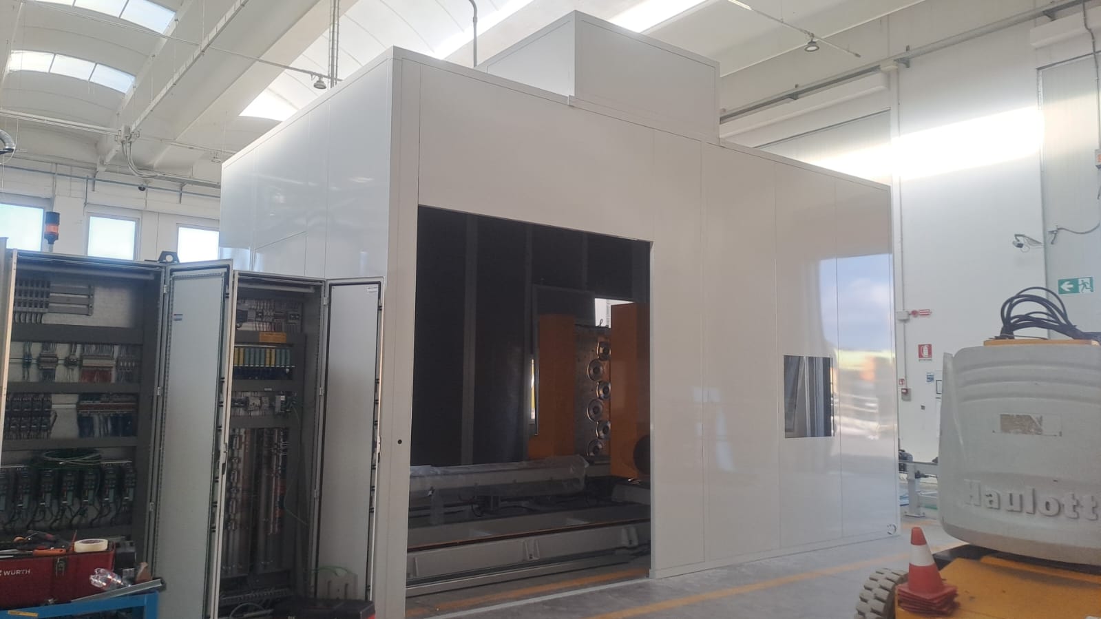 Come uno dei nostri ultimi lavori; abbiamo installato una cabina insonorizzante e di protezione per una macchina fresatrice con lo scopo di proteggere i lavoratori e l’ambiente dal rumore causato.