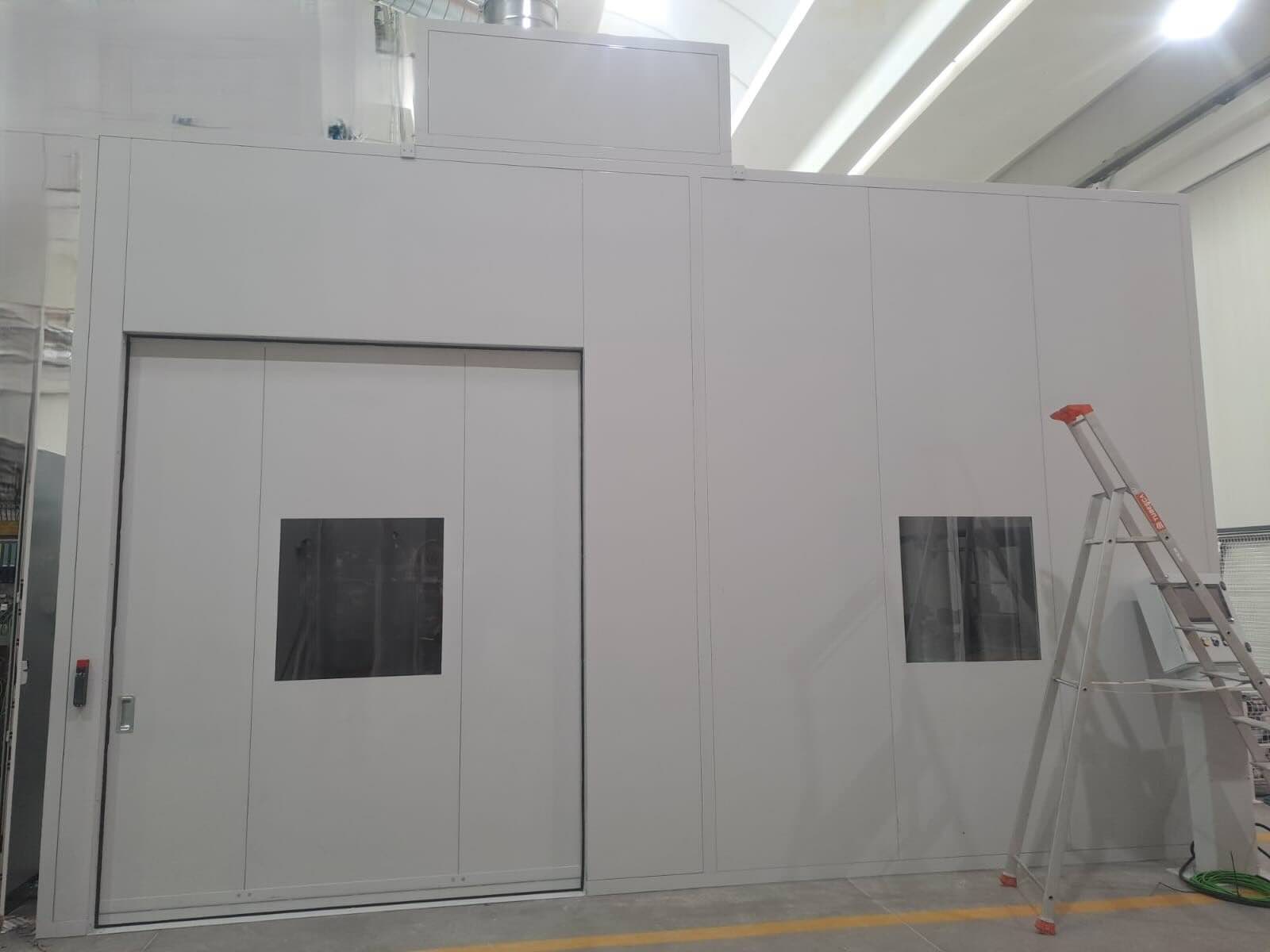 Intervento di insonorizzazione professionale con installazione di una cabina insonorizzante, di un macchinario adibito agli stress test dei pneumatici