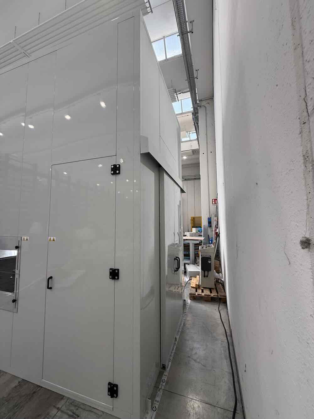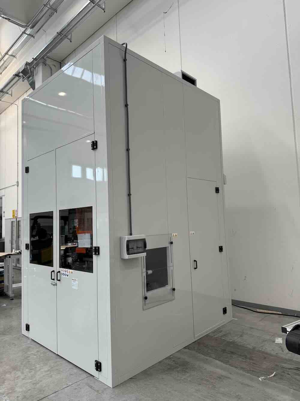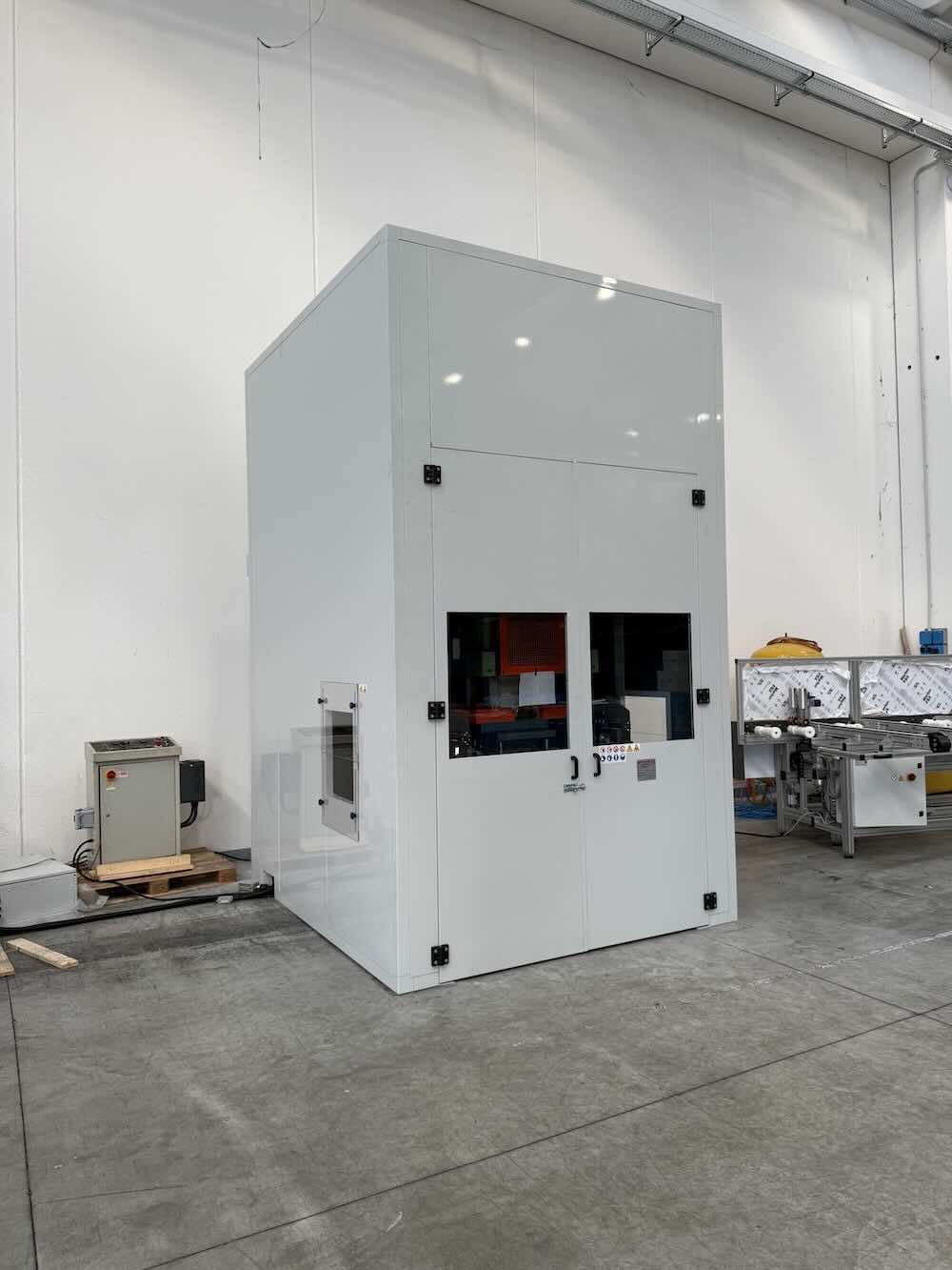 Cabina insonorizzante per una macchina pressa utilizzata per la realizzazione di profili in alluminio.