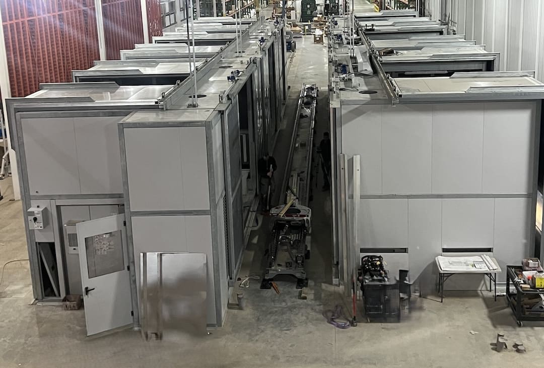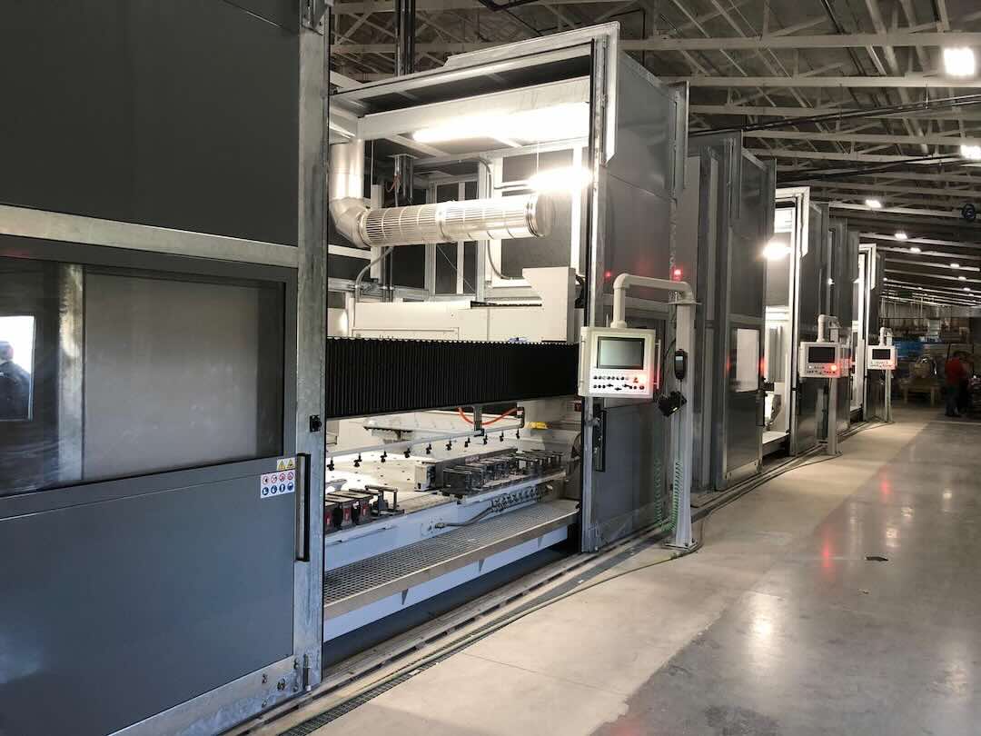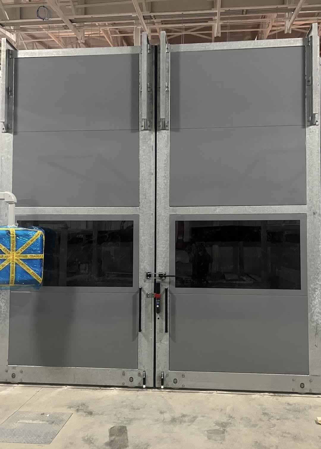 Le cabine sono dotate sul fronte di ampi portoni scorrevoli manuali con anta sagomata a “L” (apertura su fronte-tetto per facilitare carico e scarico a mezzo gru a ponte) e sul retro da ampi portoni scorrevoli con movimentazione automatica. Le cabine sono dotate di impianto di aspirazione realizzato con speciali canali inox, e di impianto elettrico completo di luci, sicurezze e automazioni, il tutto progettato e certificato secondo la normativa UL-CSA del Paese di destinazione.