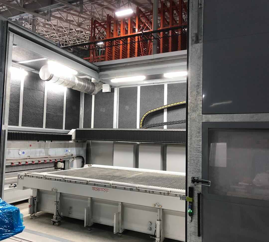 Cabina Insonorizzante per segatrice realizzata su misura per azienda nel settore della lavorazione lapidea.